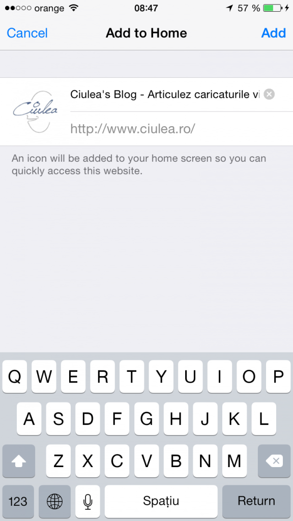 Practic, prin această ”operațiune” transformi orice pagină web într-o aplicație de mobil… bine, poate e puțin forțat să spunem aplicație de mobil, dar, oricum, ați prins și voi ideea.