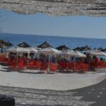Vreau sa va spun ca am ajuns acolo la ora 9:30 dimineata, si nu am mai gasit loc… in conditiile in care pe orice plaja din Thassos, inclusiv pe cea cu blue flag de la Golden beach, eram doar eu cu buburuza pana la ora 11. Sezlong langa sezlong, umbrela langa umbrela, muzica la maxim si multa, multa lume… Zici ca eram la ziua minerului!