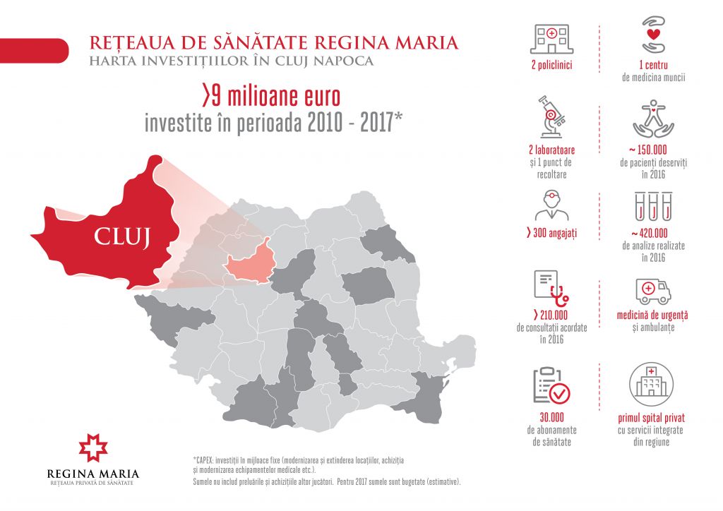 Următorul și cel mai important proiect al Rețelei de sănătate REGINA MARIA în Cluj va fi deschiderea, în primul trimestru din 2018, primului spital privat cu servicii integrate din Cluj și singura unitate de anvergură cu specific de chirurgie minim-invazivă din oraș. Unitatea reprezintă cea mai mare investiție REGINA MARIA din afara Bucureștiului, fiind un proiect comun de dezvoltare, realizat în parteneriat cu dl. Horia Ciorcilă. Valoarea totală a proiectului se ridică la 15 milioane de euro.