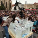 Intrebarea mea este: de ce nu se topeste gheata. Vineri seara erau cam 15 grade in Piata Unirii o temperatura semnificativ de mare comparativ cu 0 grade. Iar daca ne uitam la imagini ar trebui sa se vada mai multa apa pe jos ca urmare a topirii ghetii dupa 3 ore. Nu zic ca nu era gheata, dar totusi ar trebui sa se faca o baltuta de apa jos nu numai ici si colo sa fie ud pe jos.