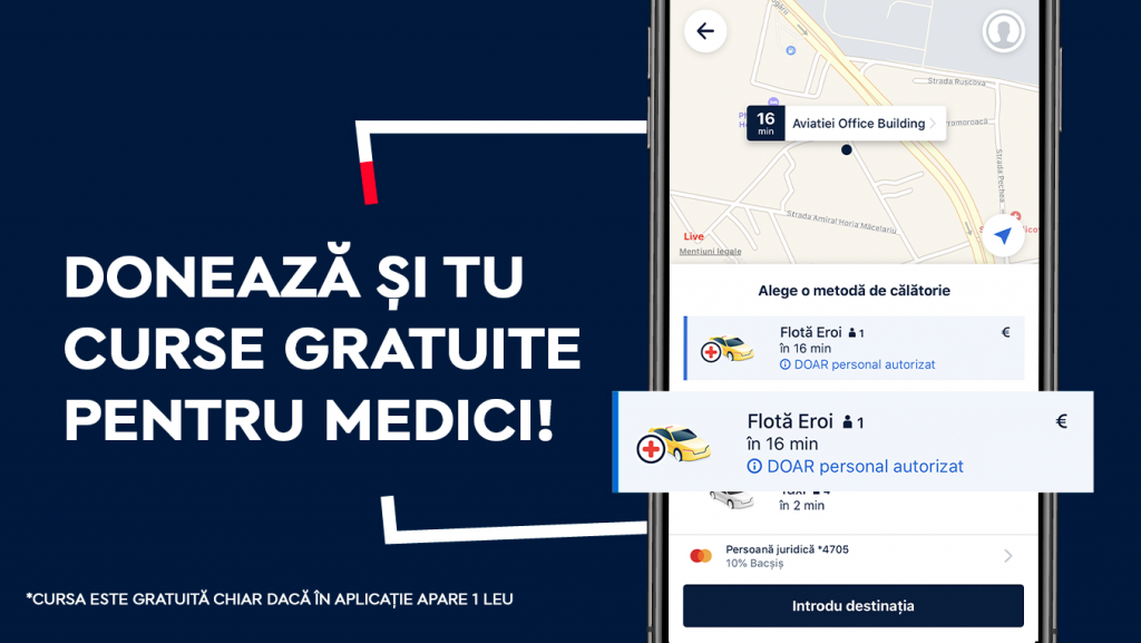 Totodată, FREE NOW a încheiat un parteneriat cu Asociația Studenților din Universitatea Politehnică București prin care oricine poate să ajute, de acasă, eroii din spitale aflați în cursa contra coronavirusului. Cu cât mai multe donații, cu atât mai multe curse pentru medici, dar și sprijin financiar pentru șoferii voluntari, pentru cheltuielile cu carburantul și cu măști, dezinfectanți și mănuși necesare pentru desfășurarea în condiții cât mai sigure a curselor. Toate informațiile despre cum poate să ajute comunitatea sunt disponibile pe free-now.com/eroi