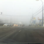 Ceata era foarte groasa, se circula incet, incat mi-am permis sa pun o poza pe facebook. De la un moment dat, urcand Feleacul, am inceput sa intrevad soarele. Era orbitor… prin ceata densa.