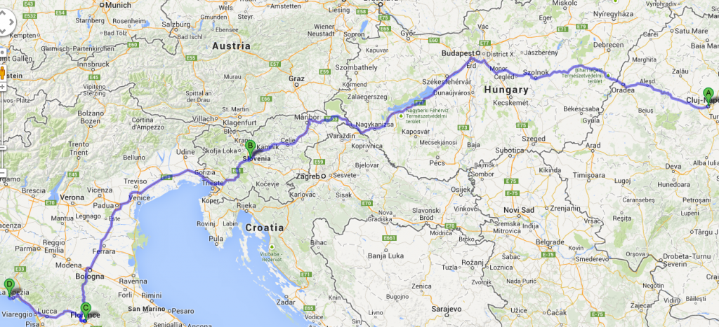 Am parcurs in toatal 3.548 KM, cu tot cu plimbat prin Ljubljana, Siena, Manarola, Florenta si alte satuce din Toscana. Costuri totale drum 450 EURO (motorina 340, autostrada 110).