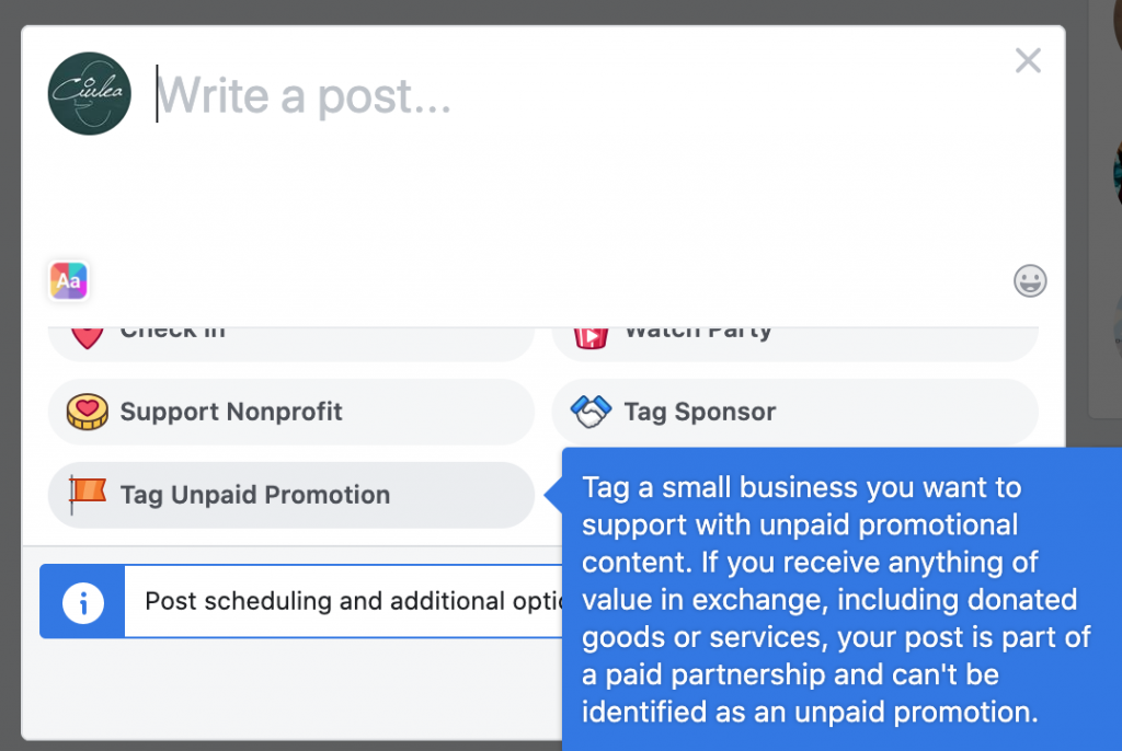 Practic e un buton prin care dai tag unei afaceri pe care vrei să o promovezi, nefiind plătit într-un fel. O faci strict din dorința de a susține afacerea respectivă.