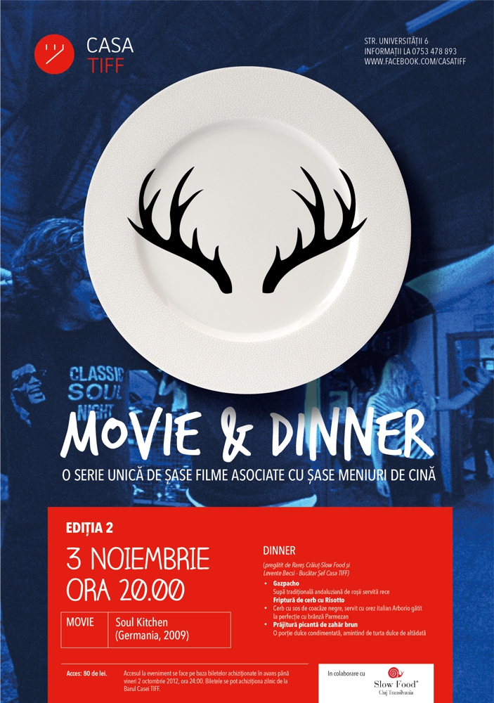 Despre Movie & Dinner va spun doar ca e la editia numarul 2 si ca o sa mancati delicatese pregatite de Rares Craiut (Slow Food) si Levente Becsi (bucatar sef la Casa TIFF).