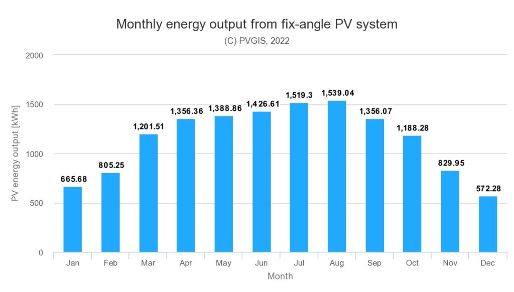 Cele 20 de panouri montate pe căsuțe însumează 10.9 kWp. Producția preconizată, conform locației de montaj (Piața Unirii, Cluj-Napoca), este cea de mai jos: