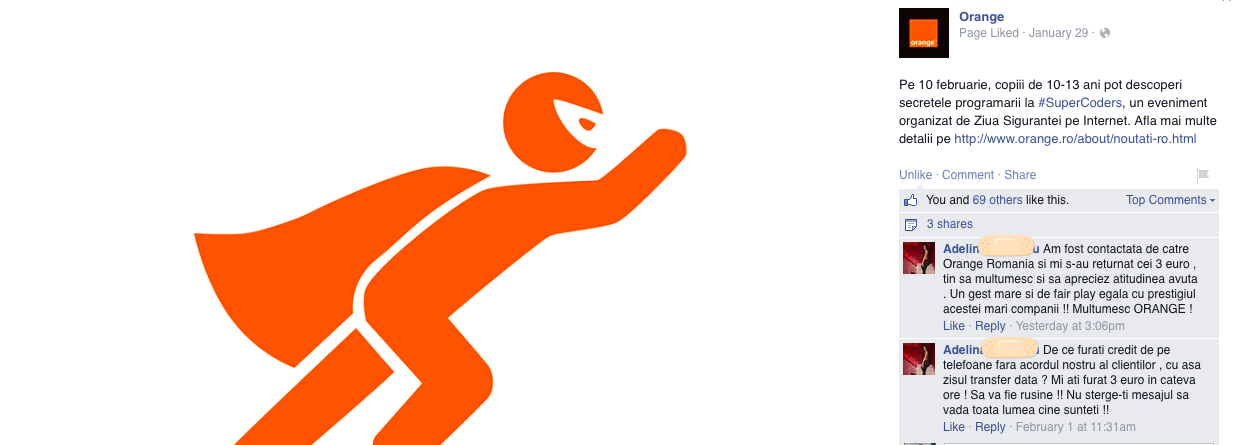 Eu cred că mulţi dintre cei care comentează public nici nu încearcă varianta privată. Şi nu cred că la un brand precum Orange nu sunt luate în seamă mesajele private.