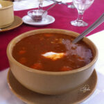 Mancarea e senzationala si ieftina. Cand m-am intors din Budapesta, duminica, am facut in asa fel incat sa prind deschis, si mi-am comandat un babgulyas, un bogracsgulyas, un somloy, o cafea, o limonada la 1 litru, paine, smantana 9din belsug) plus inca doua babgulyasuri la pachet, si am platit, cu un bacsis de 20 si ceva la suta, 5.000 HUF. Tradus in banii nostri e undeva la 75 lei.