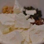 Intre timp, intr-un bol am pus cateva linguri de smantana grasa, peste care am pus niste seminte de bostan taiate, seminte de pin si am mai gasit prin camara si niste seminte de in, pe care evident ca le-am adaugat… in principiu bagati orice fel de seminte aveti si va plac!