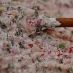 Bun, pentru ca am cumparat si niste feta, am pus-o si pe aia, dupa care am inceput sa amestec, pana cand a ajuns la o pasta omogena. Piperul si restul condimentelor nu au facut altceva decat sa dea savoare de final a salatei de ridichi.