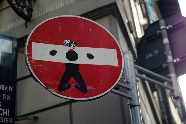 In scurta mea escapada in Italia am reusit sa ma plimb putin prin Florenta si am observat ca multe din semnele de circulatie (anoste si plictisitoare, asa cum le stim cu totii) aratau asa: