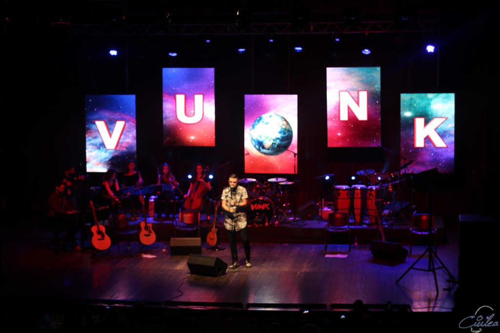 Sincer să fiu nu sunt eu fan Vunk, dar sunt fan concerte acustice, acesta fiind și motivul pentru care am fost aseră să-i văd/ascult. Și mă bucur că a făcut-o, pentru că băieții au făcut un un adevărat spectacol. De la aranjarea scenei, până la muzica și jocul de lumini, imagini proiectate în spatele lor… totul a fost minunat.
